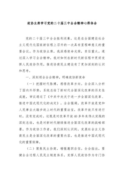 / 【七哥公文】2024年:政协主席学习党的二十届三中全会精神心得体会+更多免费公文+VX:QiGeGongWen2024