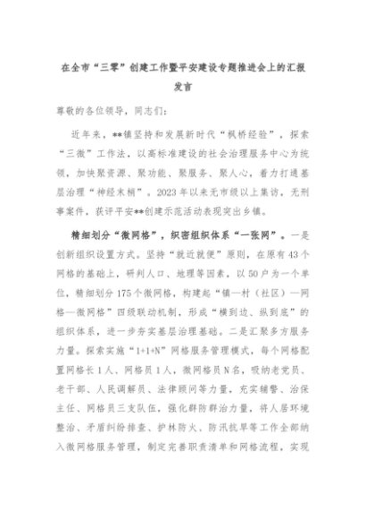 【七哥公文】2024年:在全市“三零”创建工作暨平安建设专题推进会上的汇报发言+更多免费公文+VX:QiGeGongWen2024