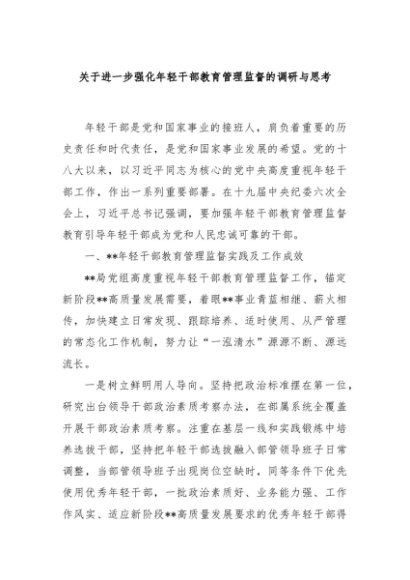 / 【七哥公文】2024年:关于进一步强化年轻干部教育管理监督的调研与思考+更多免费公文+VX:QiGeGongWen2024