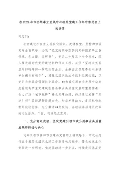 【七哥公文】2024年:在2024年市公用事业发展中心机关党建工作年中推进会上的讲话+更多免费公文+VX:QiGeGongWen2024