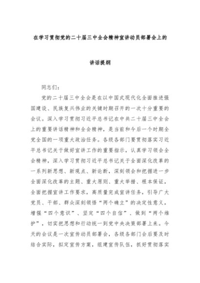 【七哥公文】2024年:在学习贯彻党的二十届三中全会精神宣讲动员部署会上的讲话提纲+更多免费公文+VX:QiGeGongWen2024