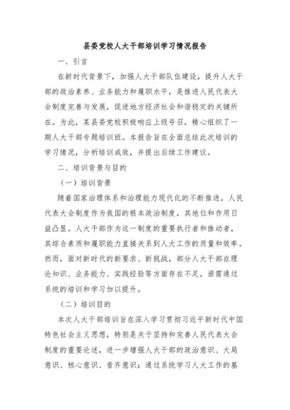 / 【七哥公文】2024年:县委党校人大干部培训学习情况报告+更多免费公文+VX:QiGeGongWen2024
