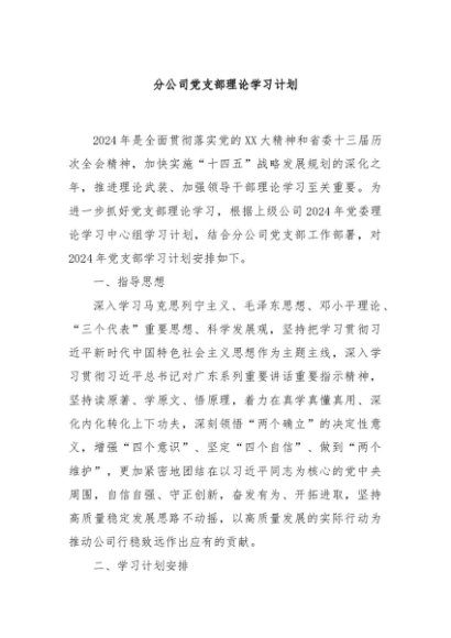 / 【七哥公文】2024年:分公司党支部理论学习计划+更多免费公文+VX:QiGeGongWen2024