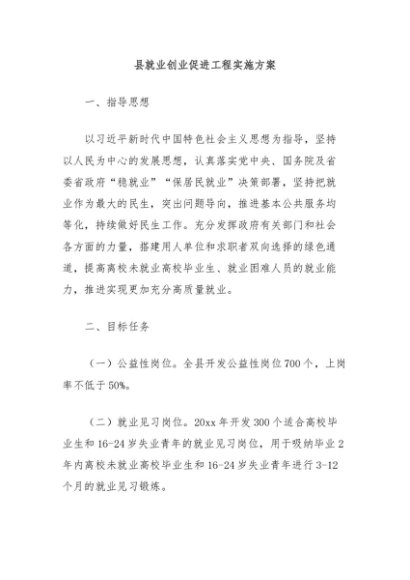 / 【七哥公文】2024年:县就业创业促进工程实施方案+更多免费公文+VX:QiGeGongWen2024