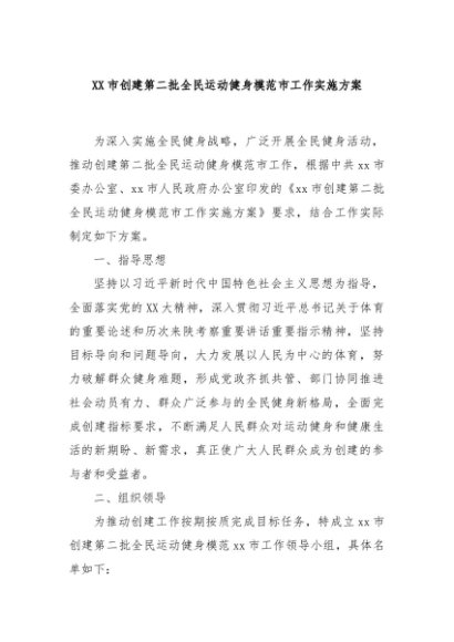 【七哥公文】2024年:XX市创建第二批全民运动健身模范市工作实施方案+更多免费公文+VX:QiGeGongWen2024