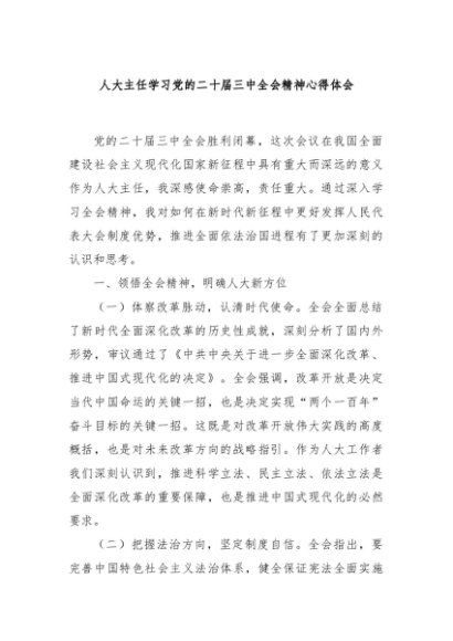 / 【七哥公文】2024年:人大主任学习党的二十届三中全会精神心得体会+更多免费公文+VX:QiGeGongWen2024