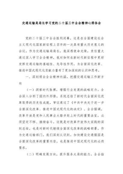 / 【七哥公文】2024年:交通运输局局长学习党的二十届三中全会精神心得体会+更多免费公文+VX:QiGeGongWen2024