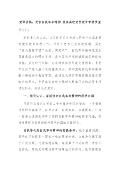 【七哥公文】2024年:党课讲稿:发言自我革命精神 提高高校党员教育管理质量+更多免费公文+VX:QiGeGongWen2024