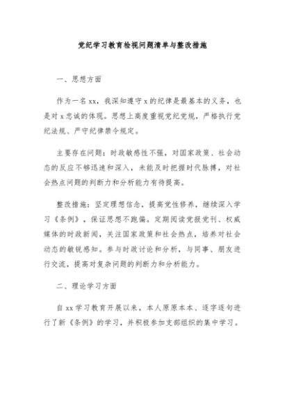 / 【七哥公文】2024年:党纪学习教育检视问题清单与整改措施+更多免费公文+VX:QiGeGongWen2024