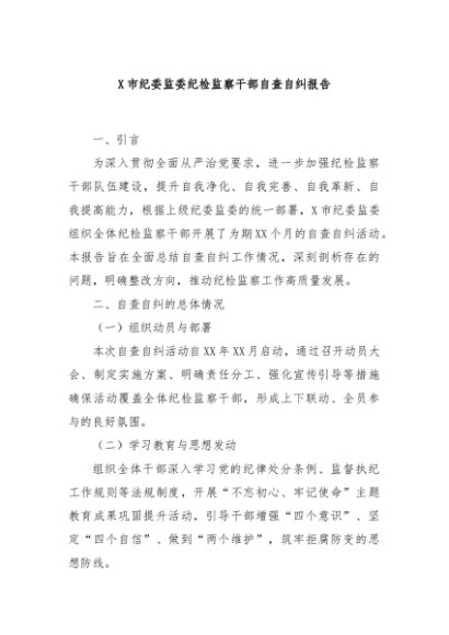 / 【七哥公文】2024年:X市纪委监委纪检监察干部自查自纠报告+更多免费公文+VX:QiGeGongWen2024
