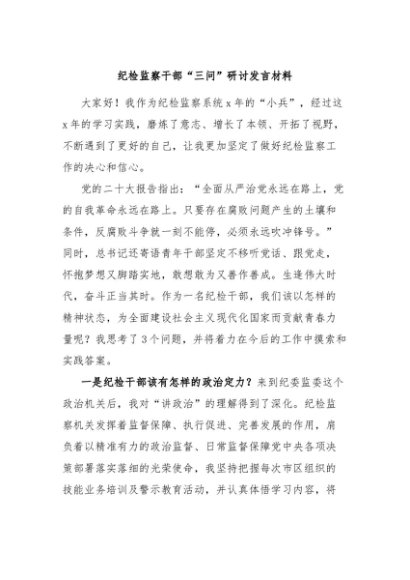 / 【七哥公文】2024年:纪检监察干部“三问”研讨发言材料+更多免费公文+VX:QiGeGongWen2024
