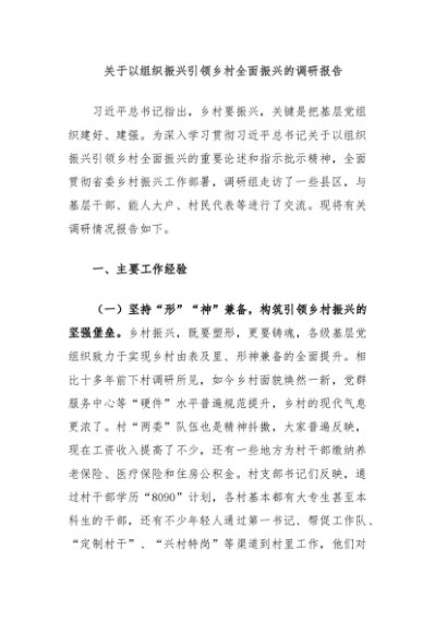 / 【七哥公文】2024年:关于以组织振兴引领乡村全面振兴的调研报告+更多免费公文+VX:QiGeGongWen2024