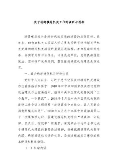 / 【七哥公文】2024年:关于创建模范机关工作的调研与思考+更多免费公文+VX:QiGeGongWen2024