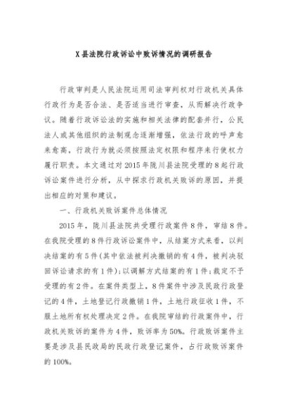 【七哥公文】2024年:X县法院行政诉讼中败诉情况的调研报告+更多免费公文+VX:QiGeGongWen2024