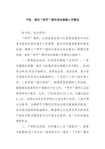 【七哥公文】2024年:中秋、国庆“两节”期间信访维稳工作情况+更多免费公文+VX:QiGeGongWen2024