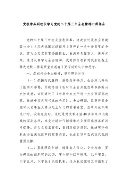 / 【七哥公文】2024年:党校常务副校长学习党的二十届三中全会精神心得体会+更多免费公文+VX:QiGeGongWen2024