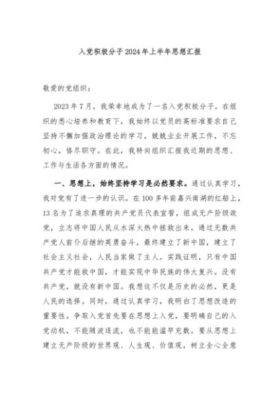 / 【七哥公文】2024年:入党积极分子2024年上半年思想汇报+更多免费公文+VX:QiGeGongWen2024