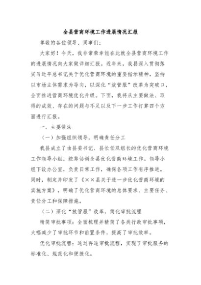 / 【七哥公文】2024年:全县营商环境工作进展情况汇报+更多免费公文+VX:QiGeGongWen2024
