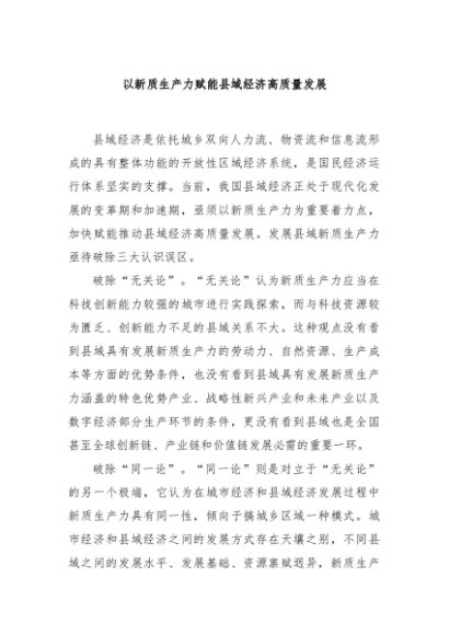 【七哥公文】2024年:以新质生产力赋能县域经济高质量发展+更多免费公文+VX:QiGeGongWen2024