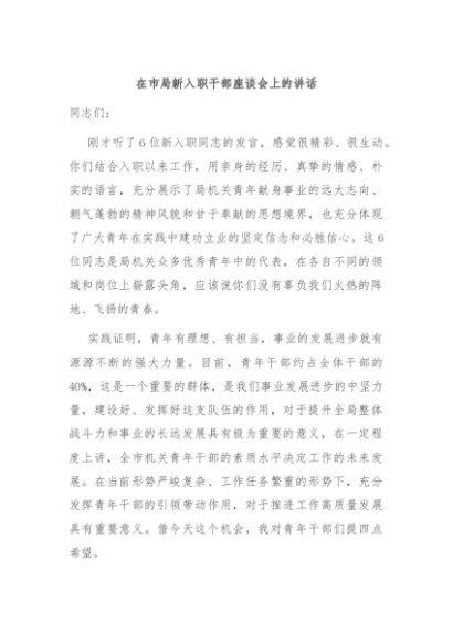 【七哥公文】2024年:在市局新入职干部座谈会上的讲话+更多免费公文+VX:QiGeGongWen2024