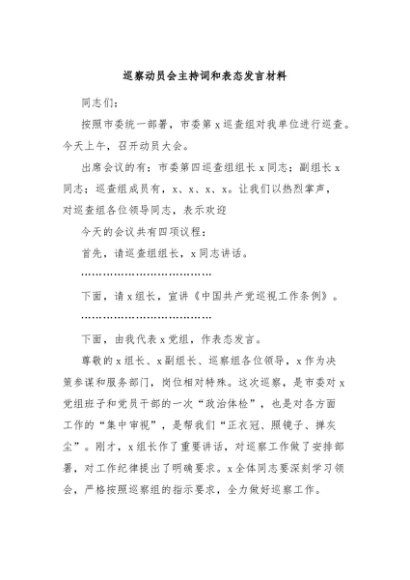 / 【七哥公文】2024年:巡察动员会主持词和表态发言材料+更多免费公文+VX:QiGeGongWen2024