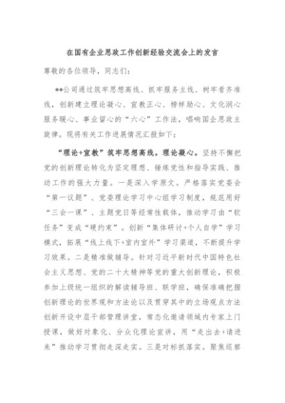 / 【七哥公文】2024年:在国有企业思政工作创新经验交流会上的发言+更多免费公文+VX:QiGeGongWen2024