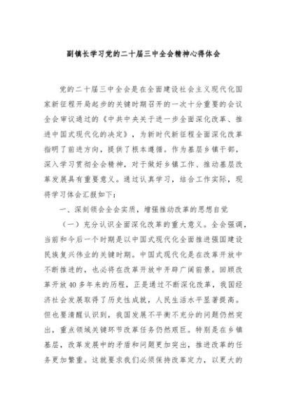 / 【七哥公文】2024年:副镇长学习党的二十届三中全会精神心得体会+更多免费公文+VX:QiGeGongWen2024