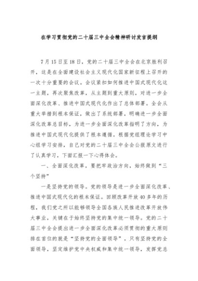 / 【七哥公文】2024年:在学习贯彻党的二十届三中全会精神研讨发言提纲+更多免费公文+VX:QiGeGongWen2024