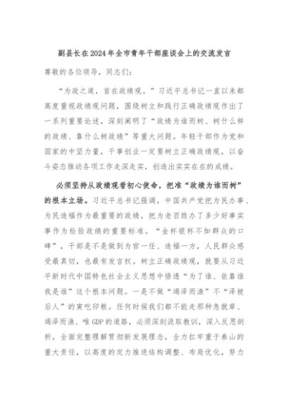 / 【七哥公文】2024年:副县长在2024年全市青年干部座谈会上的交流发言+更多免费公文+VX:QiGeGongWen2024