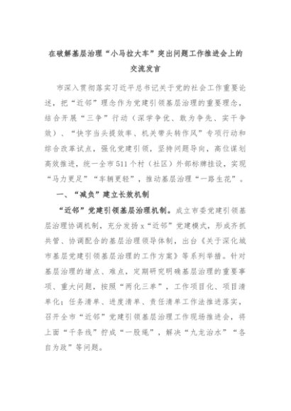【七哥公文】2024年:在破解基层治理“小马拉大车”突出问题工作推进会上的交流发言+更多免费公文+VX:QiGeGongWen2024