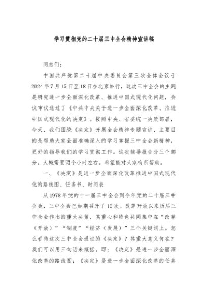 / 【七哥公文】2024年:学习贯彻党的二十届三中全会精神宣讲稿+更多免费公文+VX:QiGeGongWen2024