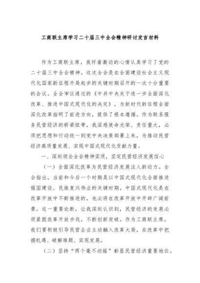 / 【七哥公文】2024年:工商联主席学习二十届三中全会精神研讨发言材料+更多免费公文+VX:QiGeGongWen2024