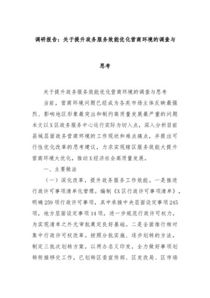 【七哥公文】2024年:调研报告:关于提升政务服务效能优化营商环境的调查与思考+更多免费公文+VX:QiGeGongWen2024