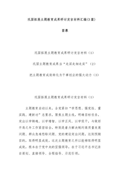 / 【七哥公文】2024年:(3篇)巩固拓展主题教育成果研讨发言材料汇编+更多免费公文+VX:QiGeGongWen2024