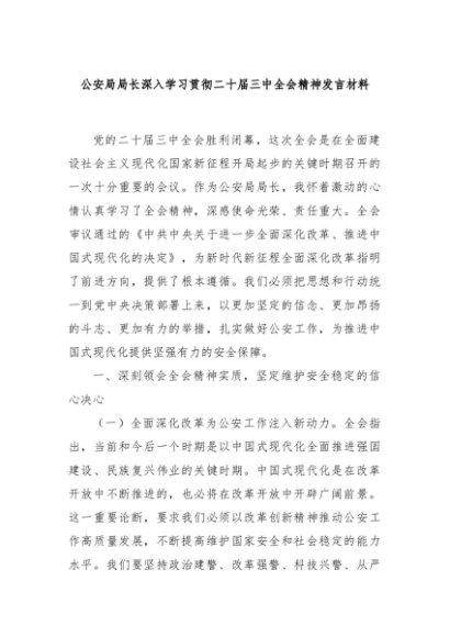/ 【七哥公文】2024年:公安局局长深入学习贯彻二十届三中全会精神发言材料+更多免费公文+VX:QiGeGongWen2024