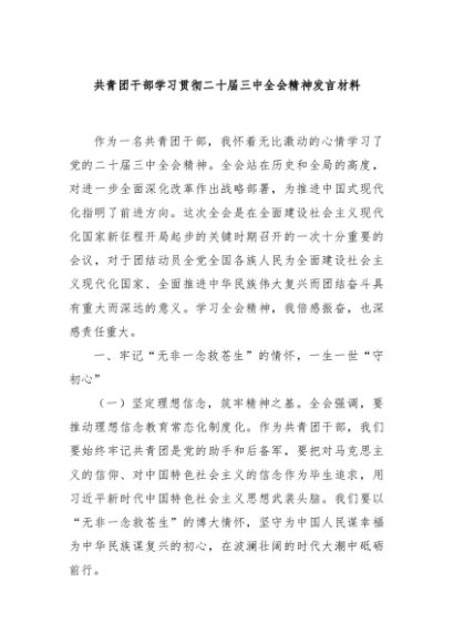 / 【七哥公文】2024年:共青团干部学习贯彻二十届三中全会精神发言材料+更多免费公文+VX:QiGeGongWen2024