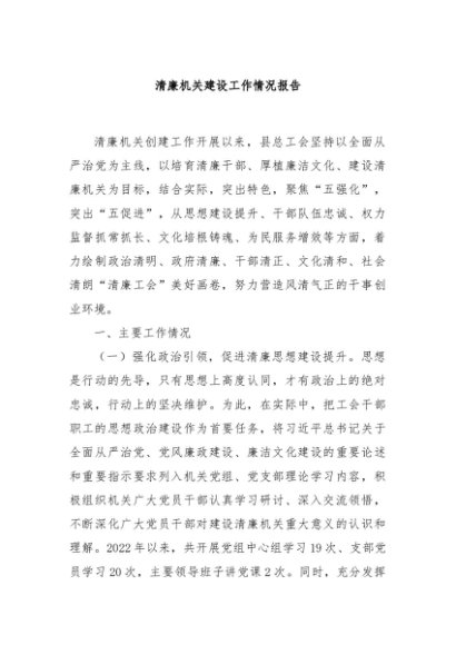 / 【七哥公文】2024年:清廉机关建设工作情况报告+更多免费公文+VX:QiGeGongWen2024
