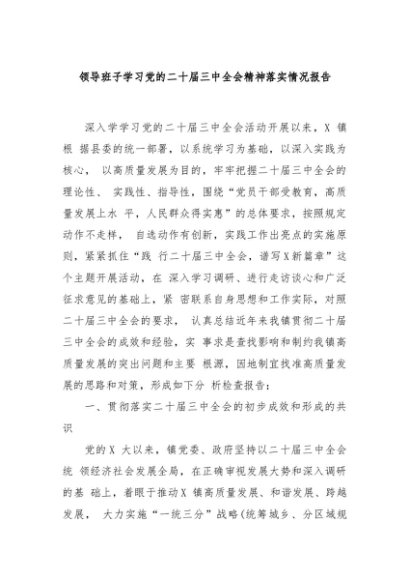 【七哥公文】2024年:领导班子学习党的二十届三中全会精神落实情况报告 (1)+更多免费公文+VX:QiGeGongWen2024