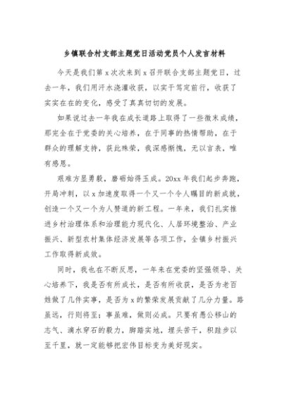/ 【七哥公文】2024年:乡镇联合村支部主题党日活动党员个人发言材料+更多免费公文+VX:QiGeGongWen2024