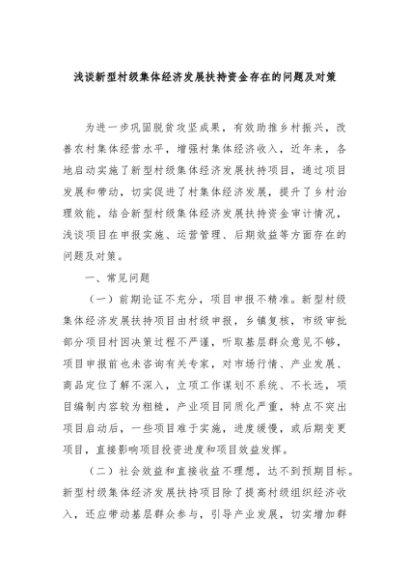 / 【七哥公文】2024年:浅谈新型村级集体经济发展扶持资金存在的问题及对策+更多免费公文+VX:QiGeGongWen2024