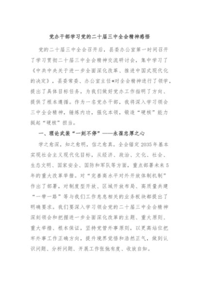 / 【七哥公文】2024年:党办干部学习党的二十届三中全会精神感悟 (1)+更多免费公文+VX:QiGeGongWen2024