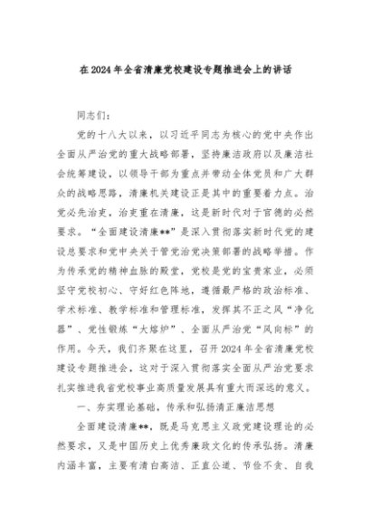 / 【七哥公文】2024年:在2024年全省清廉党校建设专题推进会上的讲话+更多免费公文+VX:QiGeGongWen2024