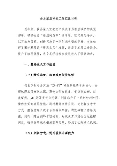 / 【七哥公文】2024年:全县基层减负工作汇报材料+更多免费公文+VX:QiGeGongWen2024