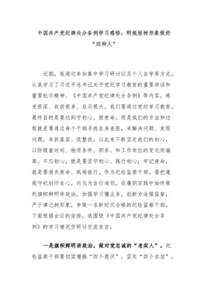 【七哥公文】2024年:中国共产党纪律处分条例学习感悟:明规矩树形象做好“四种人”+更多免费公文+VX:QiGeGongWen2024