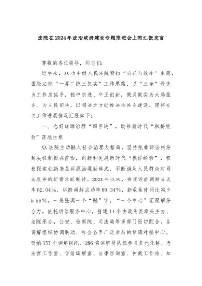 【七哥公文】2024年:法院在2024年法治政府建设专题推进会上的汇报发言+更多免费公文+VX:QiGeGongWen2024