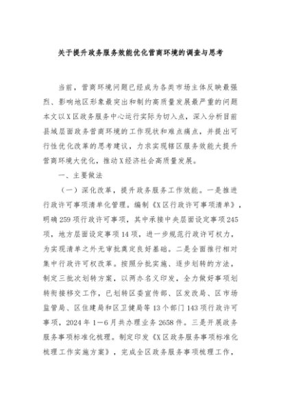 【七哥公文】2024年:关于提升政务服务效能优化营商环境的调查与思考+更多免费公文+VX:QiGeGongWen2024