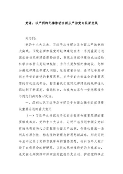 / 【七哥公文】2024年:党课:以严明的纪律推动全面从严治党向纵深发展+更多免费公文+VX:QiGeGongWen2024