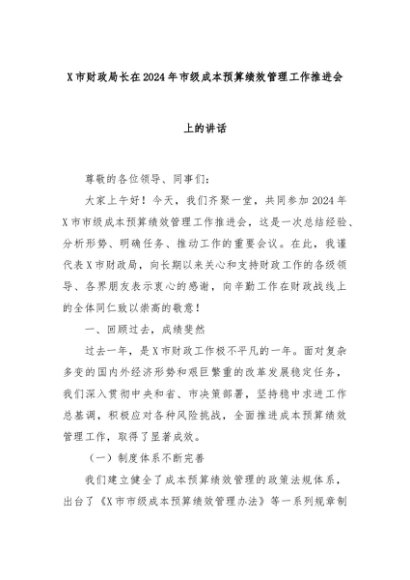 【七哥公文】2024年:X市财政局长在2024年市级成本预算绩效管理工作推进会上的讲话+更多免费公文+VX:QiGeGongWen2024