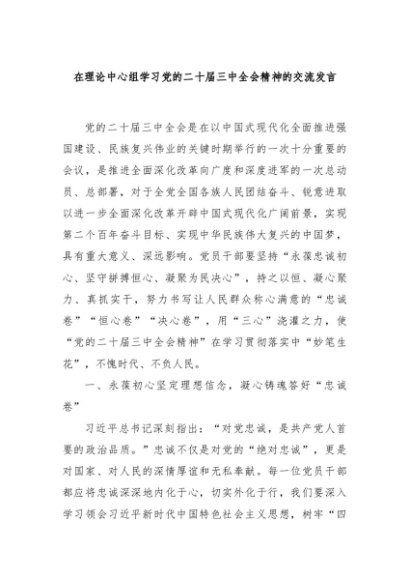 【七哥公文】2024年:在理论中心组学习党的二十届三中全会精神的交流发言 (1)+更多免费公文+VX:QiGeGongWen2024