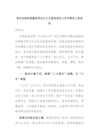 【七哥公文】2024年:部长在组织部整治形式主义为基层减负工作专题会上的讲话+更多免费公文+VX:QiGeGongWen2024
